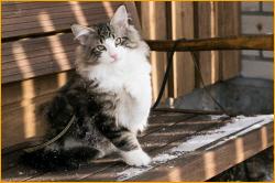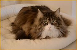 Jimsy wurde sie genannt. Eine ganz besondere Katze mit einem ganz besonderen Stellenwert in unserer Katzenfamilie, war sie doch meine erste Norwegische Waldkatze überhaupt. Ich werde den Moment, in dem ich sie als 4 Monate altes Kätzchen an einer Katzenausstellung zum ersten Mal gesehen habe, niemals vergessen. Jimsy war der Anfang meiner Begeisterung und Leidenschaft für diese wunderschöne Katzenrasse. Jimsy war eine Lady mit starkem Charakter und unvergleichlichem Look, sie hat uns lange 16 1/2 Jahre durch's Leben begleitet. Leb wohl Jimsy, danke für die schöne Zeit mit dir, wir sehen uns wieder!